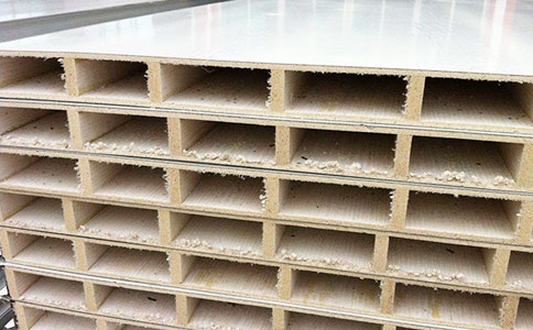 中空玻鎂板以二層5mm防火玻鎂板、中間加防火玻鎂內(nèi)隔條為芯材,經(jīng)彩鋼夾芯板多功能連續(xù)生產(chǎn)線復(fù)合成型,中空玻鎂彩鋼夾芯板其特點(diǎn)板材為防火不燃材料組成,有效提高了彩鋼夾芯板的防火性能,又能滿足在有防潮 濕環(huán)境條件下使用。